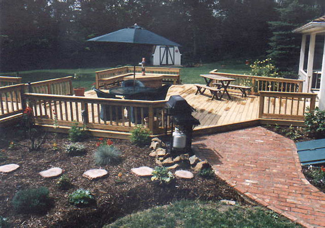 All of our decks are custom built with #1 MicroPro treated Red Pine, which is the best material for use in decks. The #1 should represent that there are fewer knots, no Wayne or bark and of course no rot. This is inspected by the National Lumber Industry, and carries a manufacturers lifetime warranty against rot or deterioration. As a company, we are very pleased with Red Pine as a deck material. It produces less sap and less twisting as compared to Yellow Pine or Ponderosa Pine. The option of using composite or vinyl material is also an option.