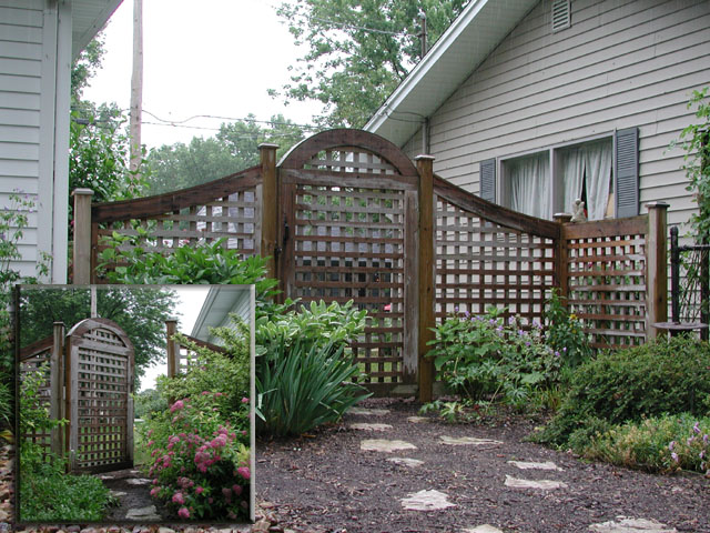This Good Neighbor® square lattice gate was designed to create a contrast in the fence line. It is framed in similarly to the Good Neighbor