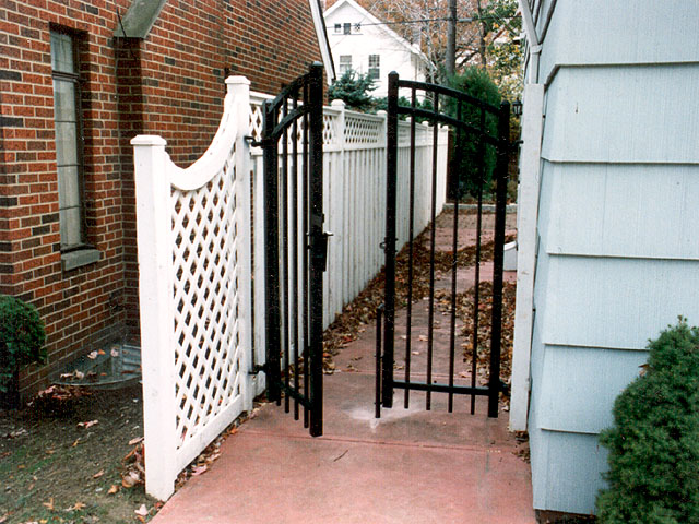 All of the ornamental fences are available in either Aluminum or Galvanized Steel. The Galvanized Steel has replaced the Ornamental Iron Fences. The Galvanized Steel is a superior product with all the elegance and craftsmanship of fencing forged by the hands of a master blacksmith. If handcrafted is what you prefer, Elyria Fence also works with an artisan who creates custom Ornamental Wrought Iron Fences by hand. This particular design is a standard ornamental fence, but modified for an arched top rail. The design is completely flexible. Customer's have the freedom to add or remove any aspect they choose. Please note that the Elyria Fence Co. does not install brick columns, however, we would be happy to assist you in the arrangements. All of the fences are available in black, white, brown or bronze. A variety of gate options are also available including automatic gate openers.